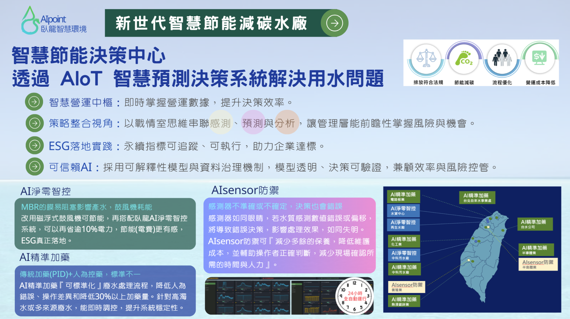協助自來水場、產業廢水處理、工業區污水廠、水資源中心與再生水廠 提升處理效能、強化營運績效,實現低碳、ESG永續發展目標。